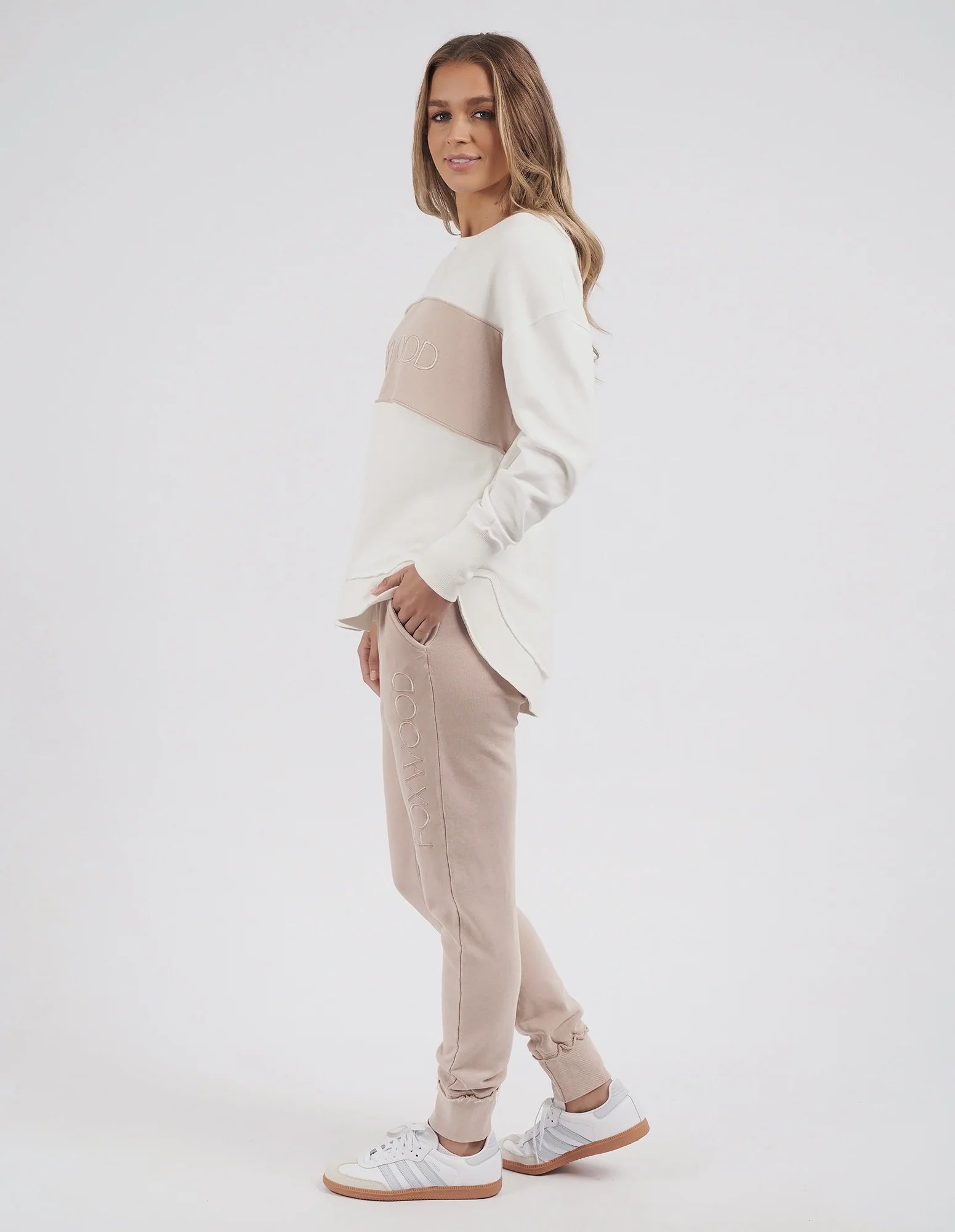 Tonal dressing is the ultimate in versatility. For those who love a coordinated look that doesn't stray too far into colour, the tonal Simplified Crew is for you. Its round neck, hi-lo hemline, side splits with raw edging, and classic Foxwood logo insert into the tonal colour panel are tonal dressing perfection. Everyone loves this best-selling crew from Foxwood Clothing.