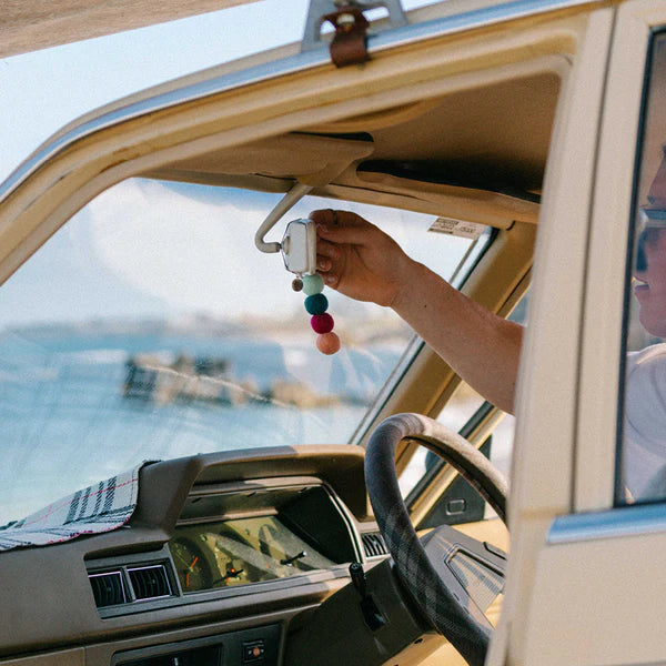 This set includes four unscented felt balls with a branded charm and elastic string, making them easy to hang in your car and a 5mL bottle of our sweet Honeysuckle fragrance oil. This captivating fragrance captures the essence of a sun-drenched summer day, combining a delightful blend of sweet, fruity, and warm floral notes accented by subtle hints of mandarin and pine needles. Once you've finished your 5mL fragrance, you can reorder our Honeysuckle 15mL Fragrance Oil Refill or try a new fragrance from our selection.